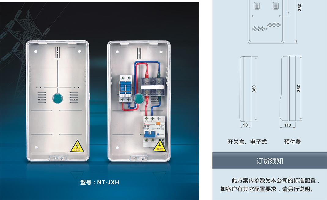 ,采用進口聚碳酸酯(PC)和阻燃ABS工程塑料制成。具有抗沖擊、抗老化、耐腐蝕、透明度高、抗紫外線、安裝方便等優點,并且具有用電安全保護,用戶分離控制,數據采集, 防盜電等功能。產品適合安裝電子式、機械式、智能IC卡預付式、智能多費率式電表。南騰NT系列透明