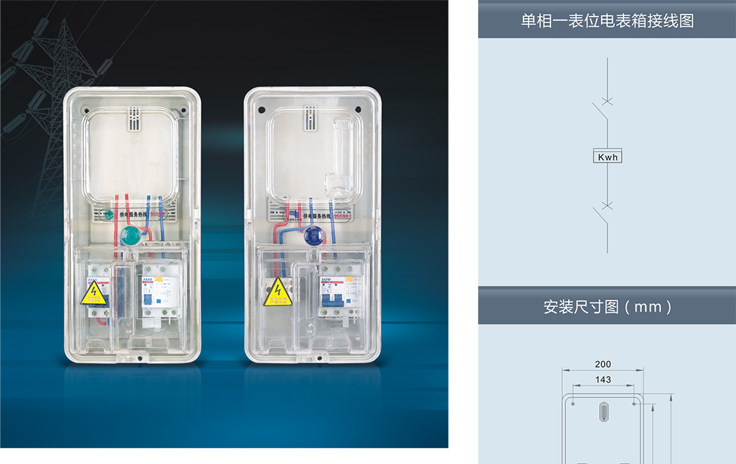 電表箱生產廠家-浙江南騰電氣有限公司研發的NT系列透明塑料電表箱,采用進口聚碳酸酯(PC)和阻燃ABS工程塑料制成。具有抗沖擊、抗老化、耐腐蝕、透明度高、抗紫外線、安裝方便等優點,并且具有用電安全保護,用戶分離控制,數據采集, 防盜電等功能。產品適合安裝電子式、機械式、智能IC卡預付式、智能多費率式電表。南騰NT系列透明塑料電表箱自推出市場以來,憑借其完美的設計理念,在電表箱行業遙遙領先。