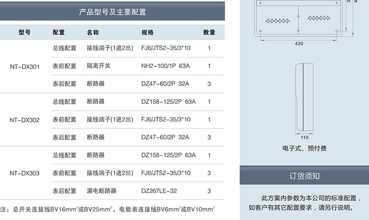 單相三表位電表箱(上下結構)產品型號及配置,南騰電表箱分享
